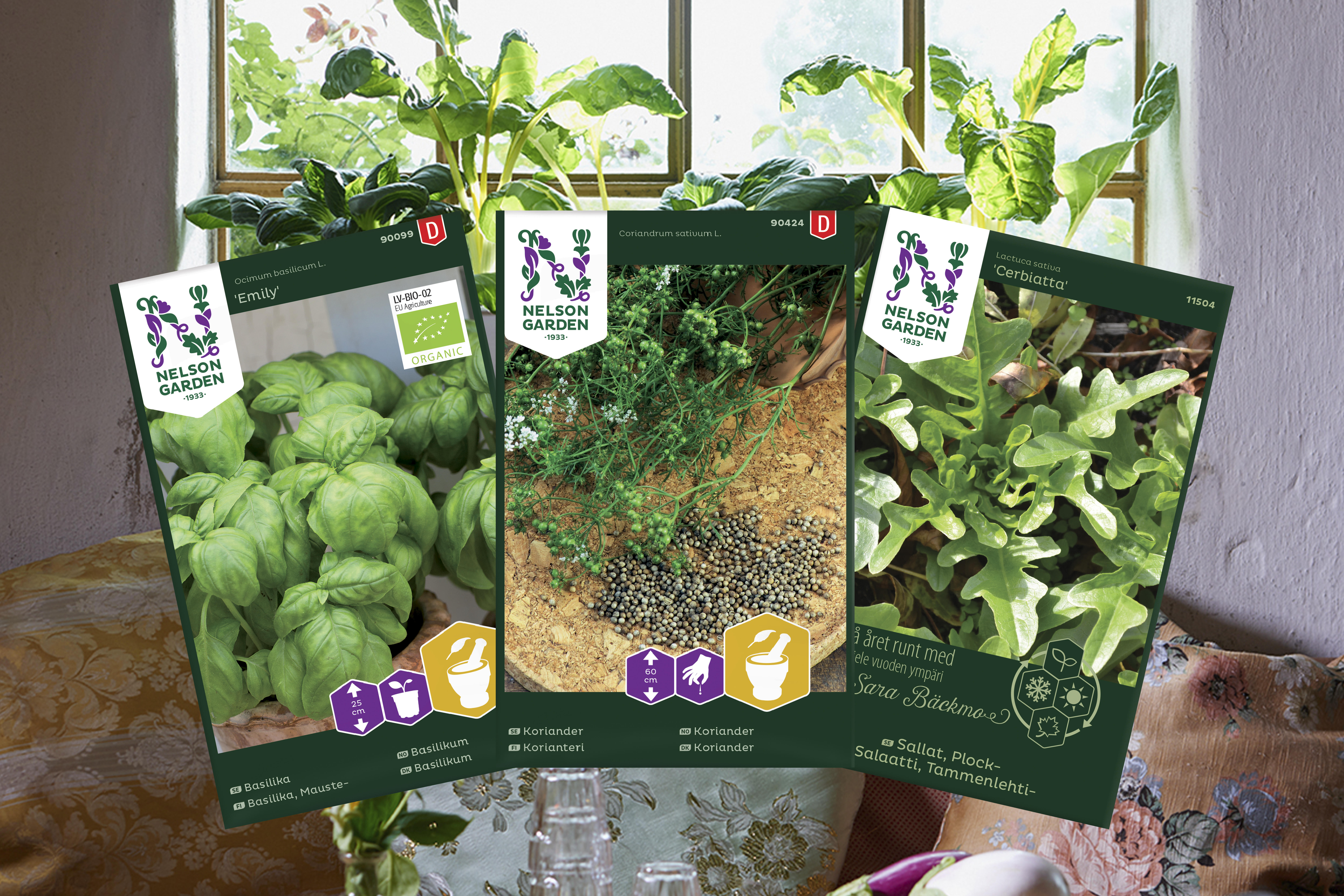 Basilikum, koriander, og salat.