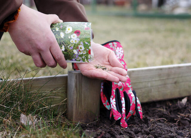 Det er lett å glemme akkurat hvor frøene er sådd, så merk såraden godt slik at du finner den igjen når snøen forsvinner. Å dekke den med en sandrad kan være en god metode når du sår om høsten.
