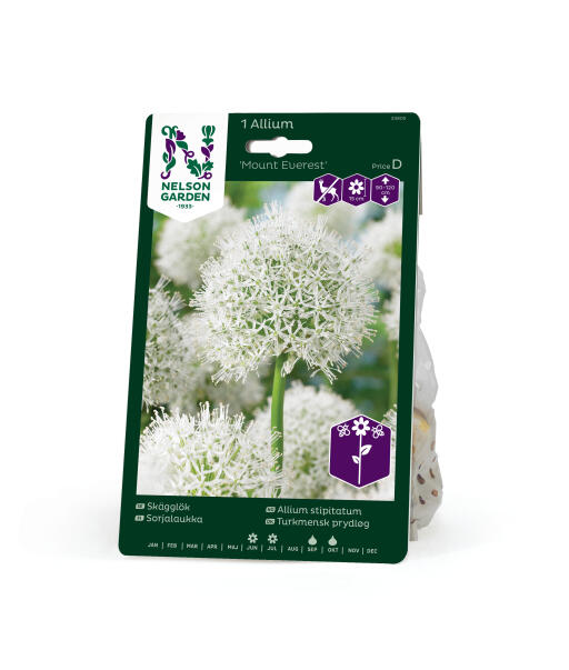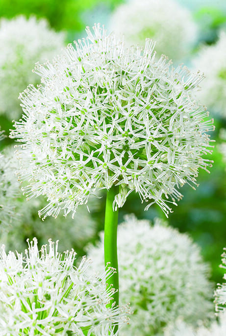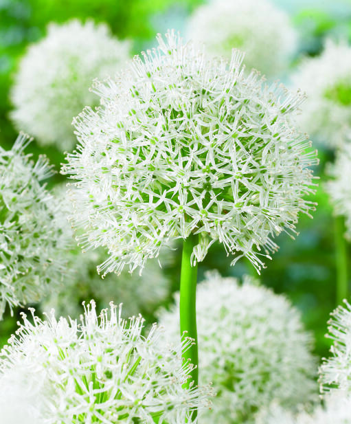 Praktfull kjempeløk med kulerunde, kremhvite blomstersamlinger som svevende snøballer i luften. De dekorative ballene, som består av små, stjerneaktige blomster, er ca. 15 cm i diameter. Mindre appetittlig for rådyr, hare, kanin og markmus.