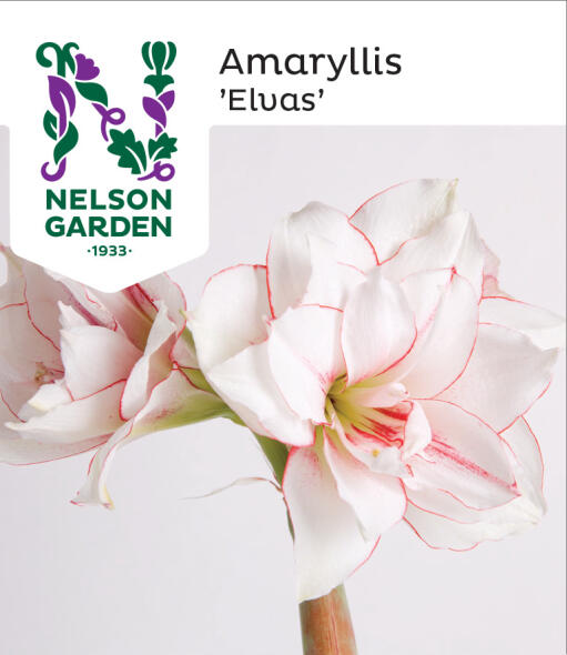 Elvas er en amaryllis med blomster som vil forbløffe deg. De er store, doble og farget i hvitt med kirsebærrøde flammer og kanter. Uten store vansker kan også du la denne skjønnheten spre blomsterglede i ditt hjem.