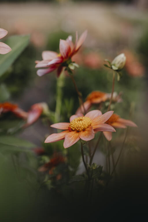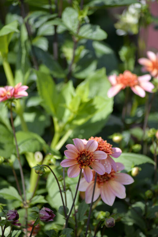En av Linda Schiléns utvalgte favoritter. En enkel og nydelig romantisk anemone-georgine i varmt rosaoransje nyanse. Perfekt å kombinere med andre farger og former i bed eller bukett.