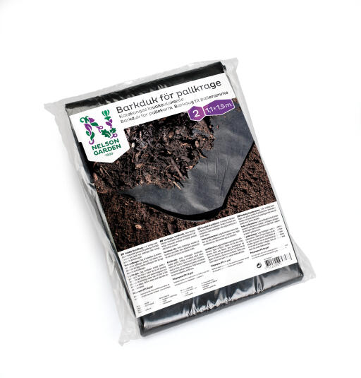 Barkduk for pallekarm, mot ugress i bunn eller på overflaten (skjær hull til plantene, dekk med f.eks. bark). Stenger ute lys, men ikke luft, vann eller næring. Polypropen (PP) 50g/m². 1,1 x 1,5 m