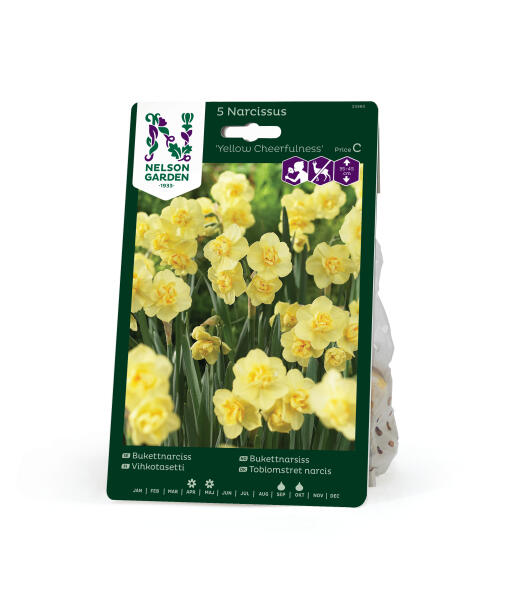 Dette er en bukettnarsiss, og som navnet antyder, sitter det to, iblant flere blomster på hver stengel. Blomstene er fylte, lysegule med litt guloransje, og dufter herlig. Mindre appetittlig for rådyr, hare, kanin og markmus.