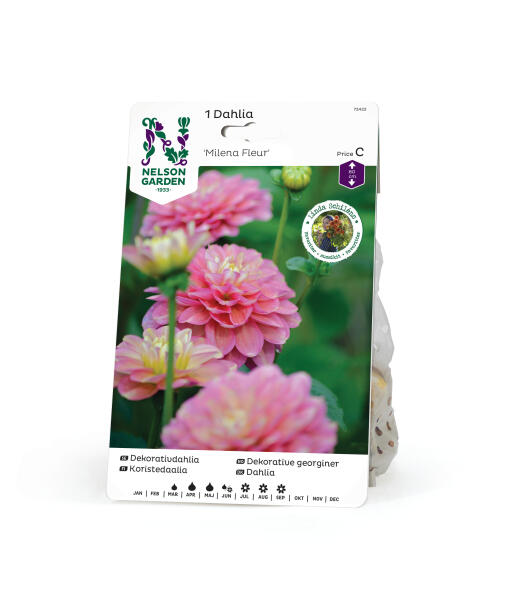 En dekorativgeorgine som skinner som om den er dekket av glitter. I romantiske nyanser fra lakserosa til lavendelblått passer den perfekt til hvite blomster, planter med mørkt bladverk eller pyntegress. Blomstrer rikelig og lenge på stødige stengler.