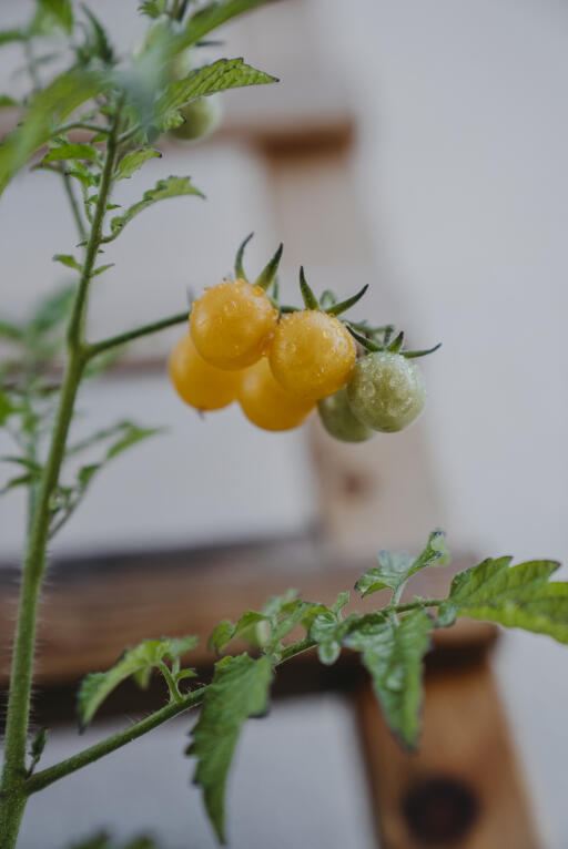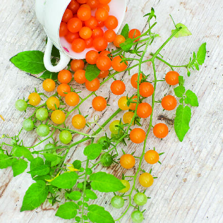 Økologiske frø. Liten druetomat som gir rikelig avling av små guloransje tomater. Perfekte å spise som snacks. Høstes etter hvert. Skuddene i bladvikene, "tyvene", skal ikke fjernes.