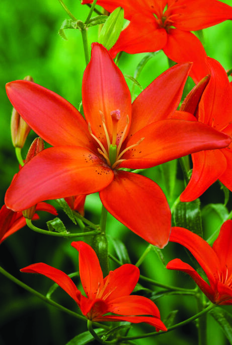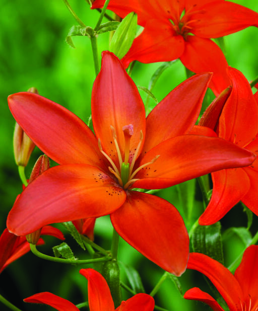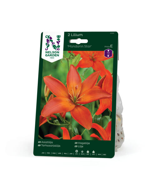 En tilsynelatende klassisk lilje i oransjerødt med det uvanlige egenskapen at den er pollenfri. Den flekker ikke klærne når den plukkes til buketter, og heller ikke duken der den plasseres. Lekker sammen med purpurfargede planter.