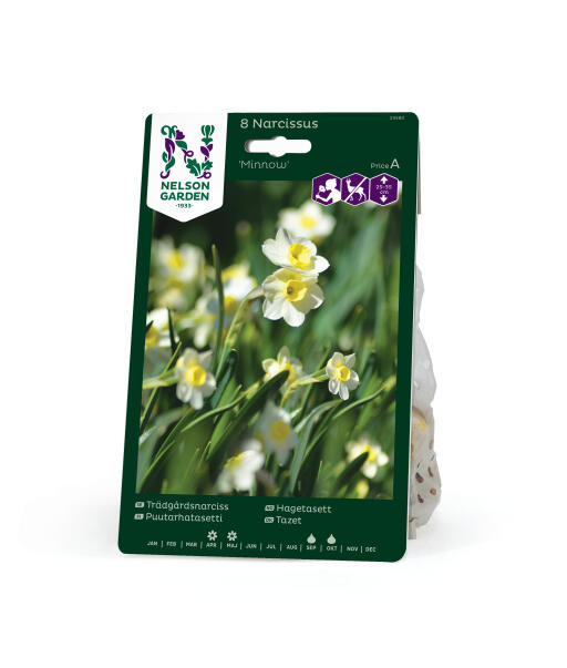 'Minnow' er en hagetasett som får to eller flere små duftende blomster på hver stengel. Kalkbladene er lysegule og bikronen er mørkere gul. Søt både i bedet og i potte. Anses som mindre appetittlig for rådyr, hare, kanin og markmus.