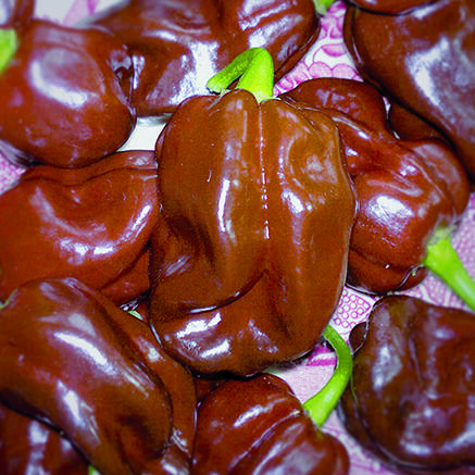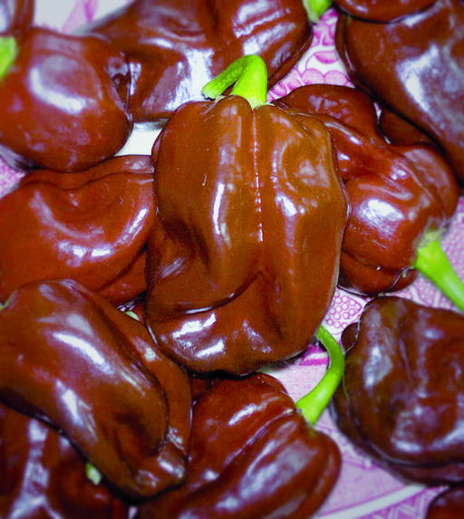 Vakker sort med brune frukter. Smaken er god og fruktig, med tydelig styrke. Styrken er målt opp til 100 000 - 300 000 scoville. Vask hendene godt med en gang etter kontakt med fruktene. Fin i potte på altan, balkong, eller i drivhus.