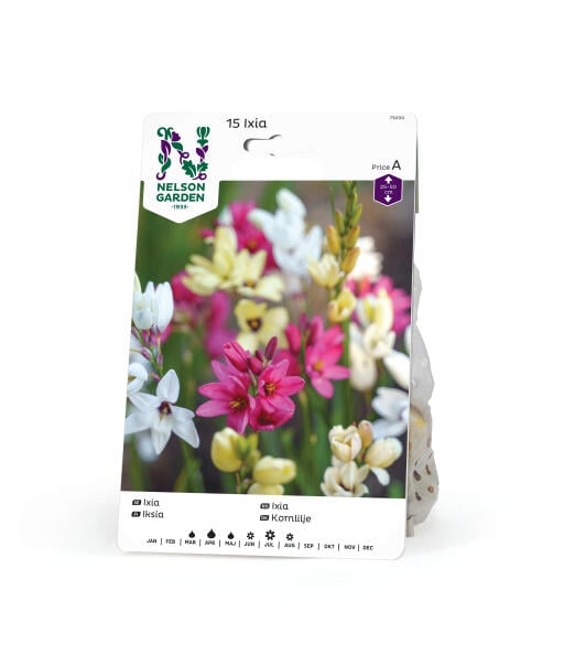 Ixia finnes i mange friske farger. De delikate, klokkeformede blomstene sitter på lange stilker og gjør den til en vakker snittblomst. Den fine høyden gjør ixia perfekt som kantplante i blomsterbedet eller i potte på balkongen.