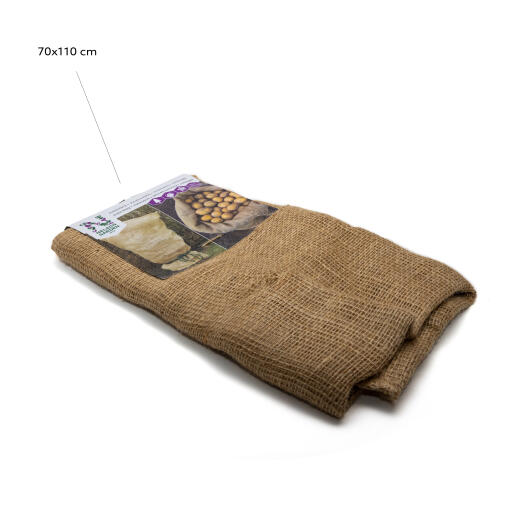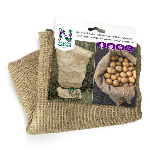 Jutesekk til tildekning av planter. Beskytter mot frost og snø. Verner mot sterk vårsol og uttørking. Kan også brukes som potteskjuler, vedsekk, til oppbevaring av grønnsaker og som gavesekk til jul. 70 x 110 cm