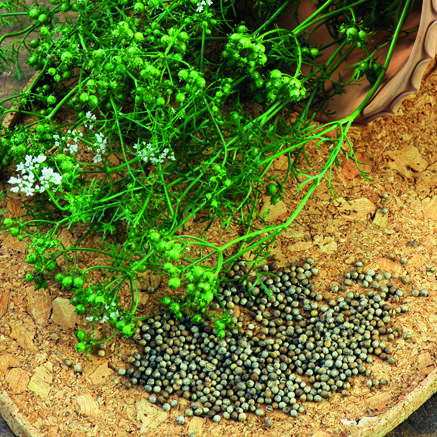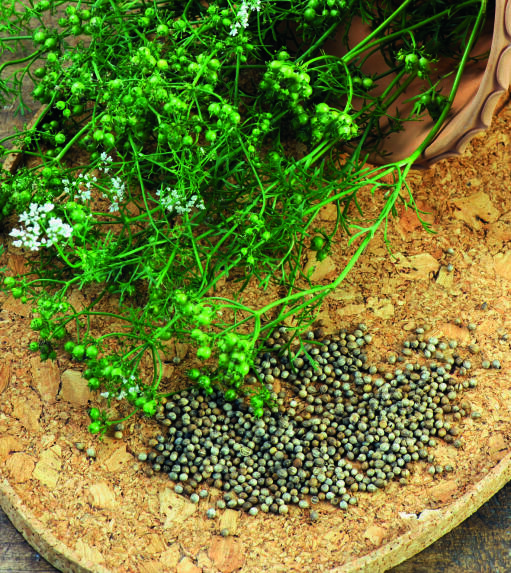 Orientalsk krydder som bl.a brukes i curry. De grønne bladene brukes ferske i salater og matretter. Frøene brukes også, de høstes og tørkes. Dekorativ plante med lyserosa blomster. Trives i de fleste typer jord, gjerne tørr og lett jord, på et lunt sted.