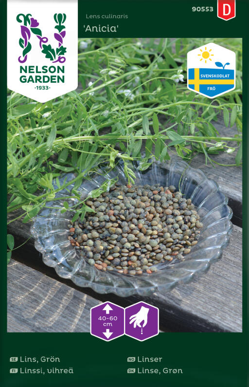 Velsmakende grønne linser. Planten kan trenge støtte. La linsene tørke på planten før de høstes. Brukes kokte. Trives i lett og veldrenert jord. Hold fuktig i starten, når planter er etablert tåler den litt tørke.