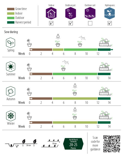 Mer detaljert informasjon om hvordan du sår, finnes her på produktsiden som du finner via QR-koden på posen.