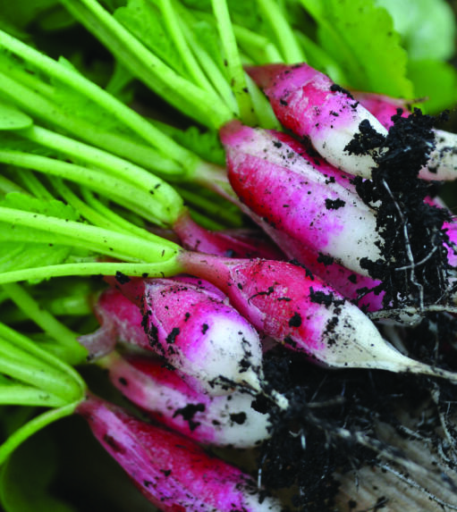 En superrask reddik, klar for høsting etter ca 18 dager. Reddiker trenger mye vann for å bli sprø og gode. De vokser aller best om våren og høsten, unngå dyrking om sommeren da de går lett i blomst. Så ofte for å høste over lang tid.