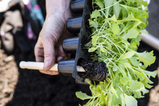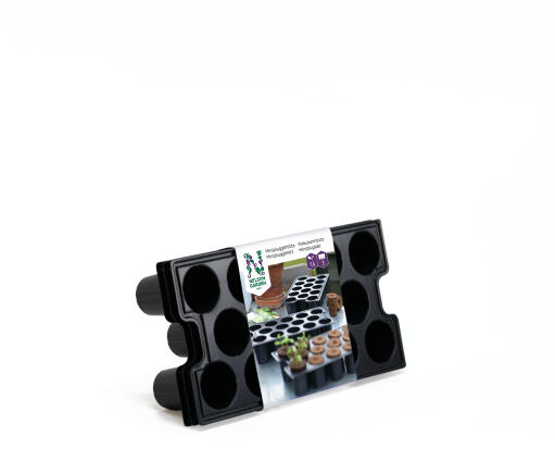 Små pluggbrett med 14 celler til jord eller planteplugger. Forenkler såing, forkultivering og omplanting. Plasseres på brett eller i spirekasse, dekk med plast eller lokk. Av polystyren (PS).