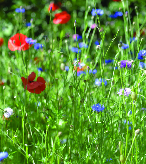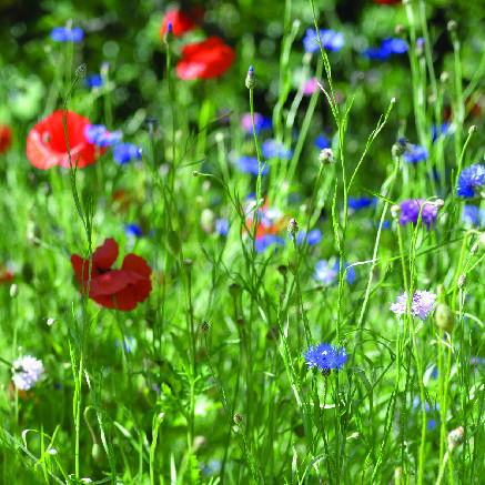 En miks av engblomster, bl.a. blåklokke, prestekrage, kornblomst og rødknapp. Lokker til seg nytteinsekter. Så frøene separat, må ikke blandes med plenfrø. Skal ikke gjødsles. Slås på sensommeren etter at blomstene har frøsådd seg.