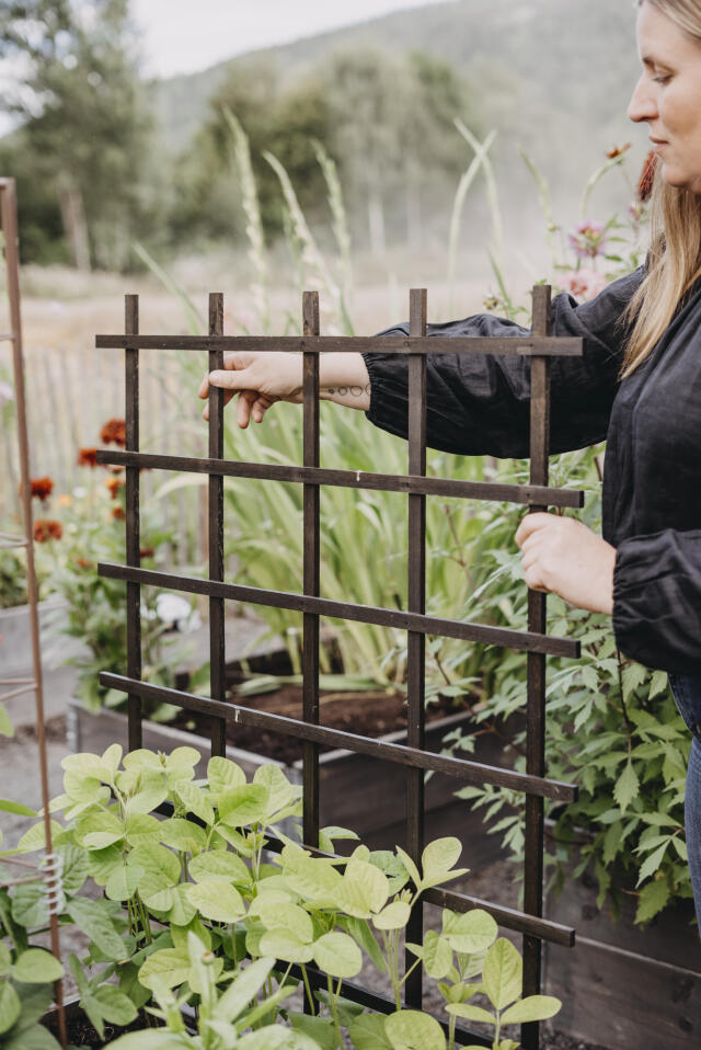 Tilbehør til pallekarm. To praktiske, svarte metallbøyler som festes på pallekarmen og dekkes med fiberduk eller plast for å forbedre dyrkingsklimaet og beskytte plantene.
