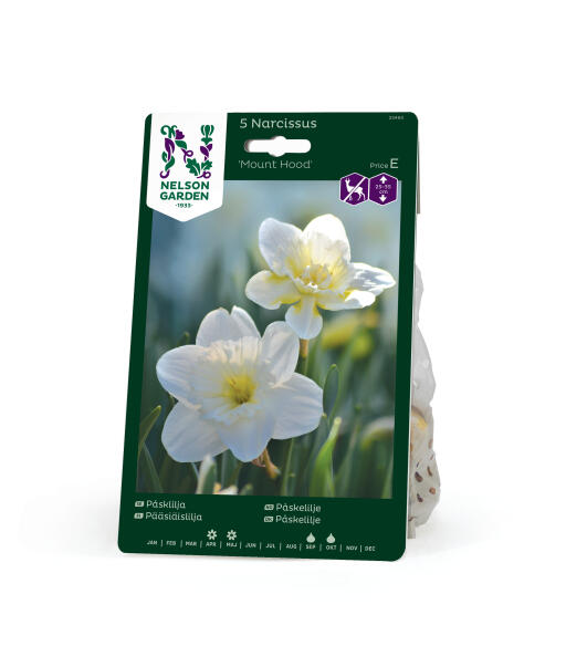'Mount Hood' er en påskelilje og tilhører Enkeltblomstgruppen. Den har store vakre blomster som begynner å blomstre i gult og deretter i kremhvitt. Passer utmerket både i bedet, blant busker og under trær. Anses som mindre appetittlig for rådyr, hare, kanin og markmus.