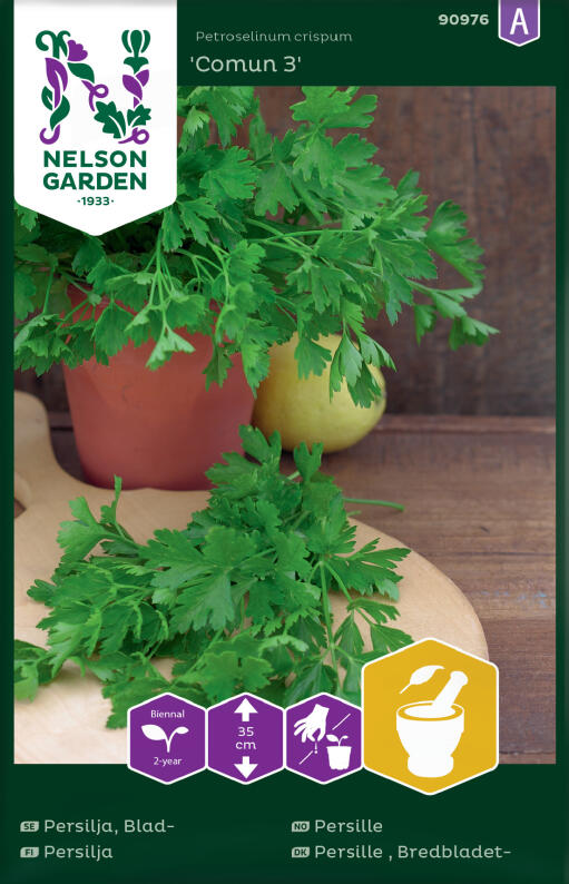 Persille med glatte blader, har en kraftigere smak enn kruspersille. Spiringstid 2-4 uker. Høstes etter hvert, langt ut på høsten. Kan fryses og lagres.