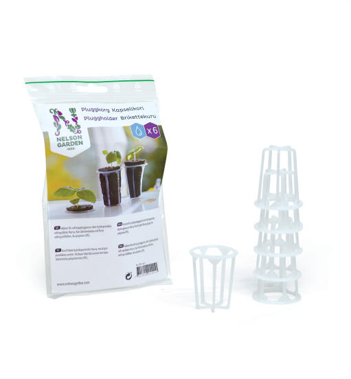 Refill-produkt for den hydroponiske dyrkingskassen Harvy. Pluggholderne brukes som holdere for plantepluggene. Kan brukes flere ganger. Av polypropen (PP).