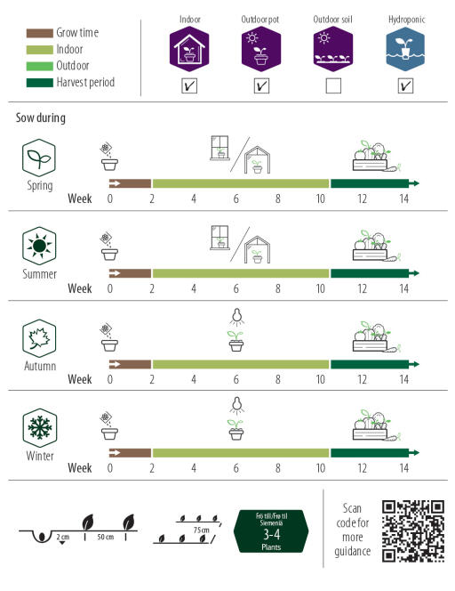 Mer detaljert informasjon om hvordan du sår, finnes her på produktsiden som du finner via QR-koden på posen.