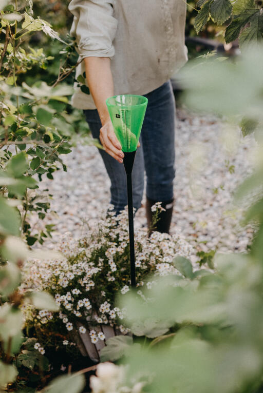 Følg med på hvor mye det regner med en klassisk regnmåler. Regnmåleren Cone er 80 cm høy og blir et pent tilskudd i bedet. Den måler opptil 50 mm nedbør.