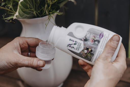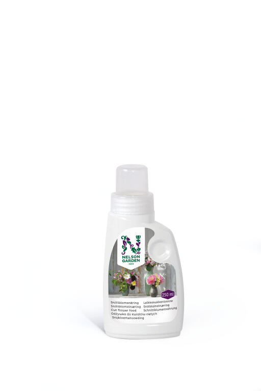 Forlenger holdbarheten til snittblomster i vase. Løsningen er fargeløs og hverken synes eller misfarger, men holder vannet i vasen friskt lenger. Konsentrat.