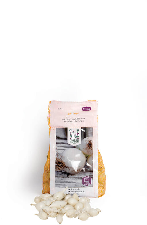 Setteløk. Sølvløk har et skinnende hvitt skall. Smaken er mild og aromatisk. God både rå og tilberedt. Små løk passer perfekt til sylting. Varmebehandlet for en sikrere avling.