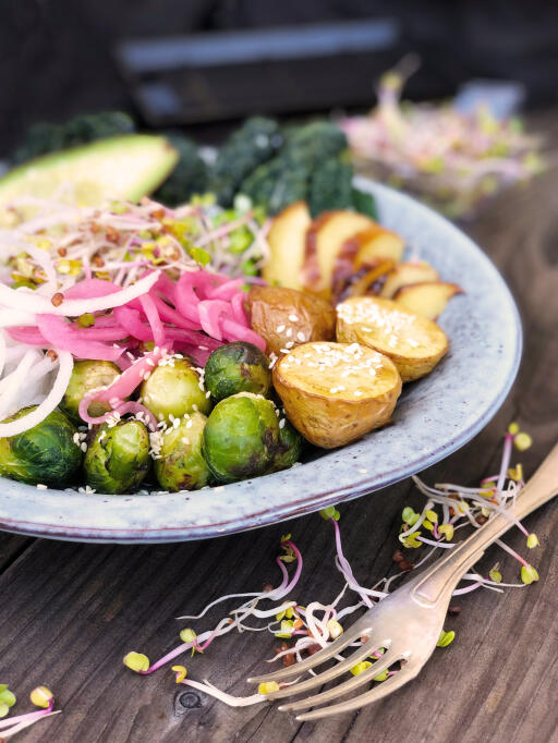En hurtigvoksende spire i rosa toner. Gir en spennende smak til salater og kjøtt. Inneholder et høyt nivå av vitaminer og mineraler.