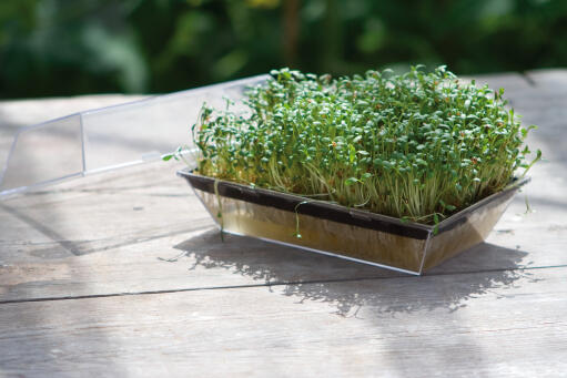 Spirekit som inneholder et spiretrau og fire poser karsefrø. Karse er enkel å få til og har en mild smak av pepper. 10 x 15,5 cm