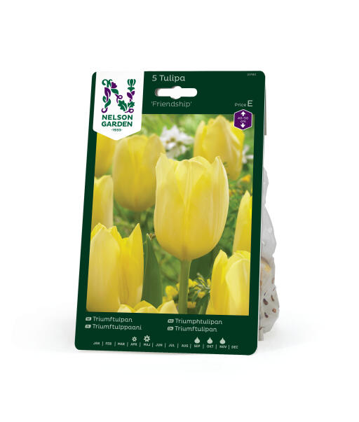 En velformet og svalt gul Triumftulipan som har tulipantypens selvsagte egenskaper: en stabil stengel og en blomst som holder lenge. Det gjør den til en utmerket snittblomst. Den gule fargen smelter lett inn i ulike fargekombinasjoner.