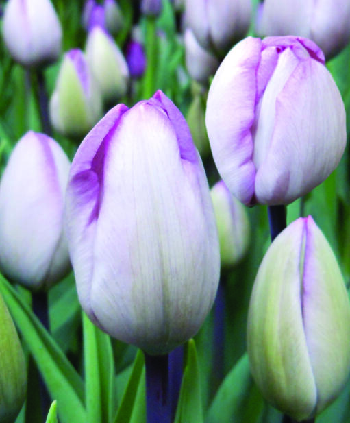 Noe utenom det vanlige, elegant og med en uvanlig farge. Fra en stram sølvgrå knopp med lilla konturer åpner det seg velformede begre hvis dype lillafarge lyser gjennom kronbladenes tynne fjærmønster. En flott snittblomst.