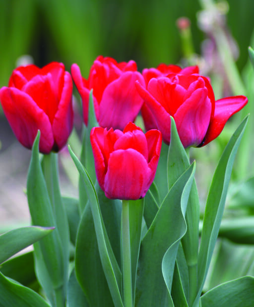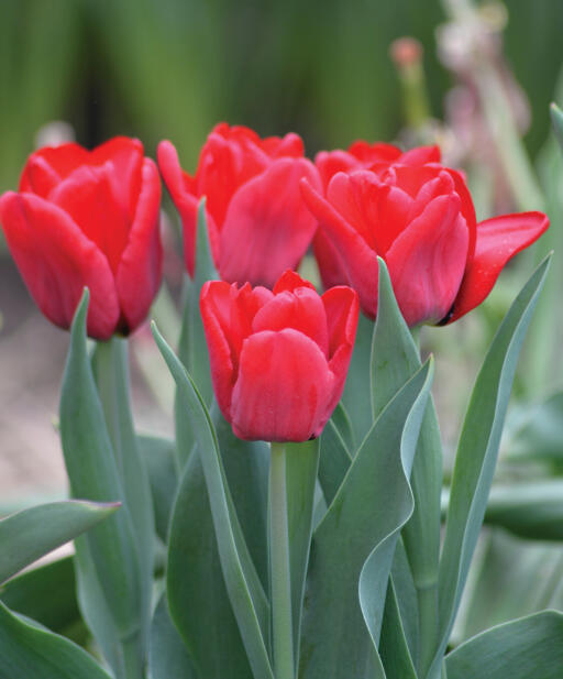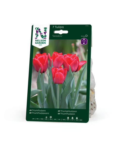 Kronbladene til denne tulipanen flammer vakkert i kardinalrødt. Triumphtulipanen er en riktig klassiker og blomstrer midt i tulipansesongen. Blomstene er relativt store og pleier å stå lenge. Meget fin som snittblomst.