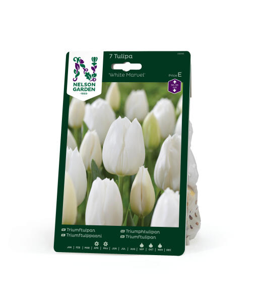 'White Marvel' er en stramt elegant tulipan med kremhvite blomster på stive, stødige stilker. Blomstene pleier å stå lenge. Meget fin som snittblomst.