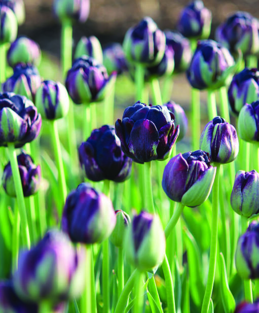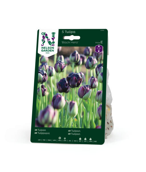 Stødig og dramatisk mørk, kanskje mørkest av alle tulipaner. De tettpakkede kronbladene skifter farge fra silkeglansende mahogni til nattsvart, spesielt i skyggen. En vakker kavalier til tulipaner i oransje og aprikos.