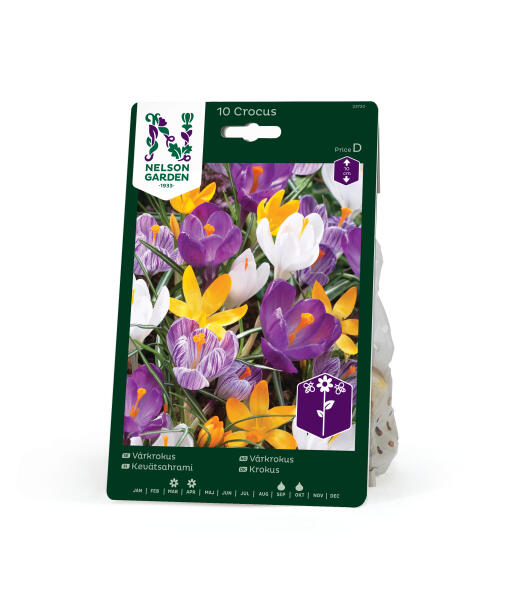 Dette er en herlig blanding av forskjellige krokuser i forskjellige farger. En nødvendighet i hagen om våren! I tillegg til i bedet passer den fint i kanten av busker og hekker, og foran trær der vårsolen lyser.