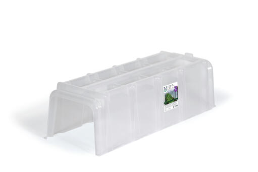 Solid værbeskyttelse og minidrivhus. Forlenger avlingsperioden høst/vinter, og gjør det mulig å så tidlig vinter/vår. Smarte vanningshull på oversiden. Av polypropen (PP). UV-vern. 105 x 39 x 30 cm.