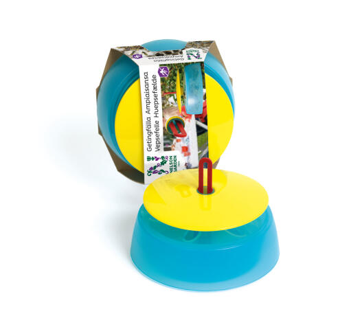 Om veps: Veps er nyttige dyr! Om våren og forsommeren mater de larvene sine med insekter, og frir oss fra en rekke skadedyr i hagen. Voksne veps livnærer seg på nektar, og besøker gjerne roseplanter, og planter med skjerm- og kurvblomstring. De pollinerer altså mange av våre vanligste frukt- og bærvekster, f.eks. eple, pære, plomme, kirsebær, jordbær, bringebær, og bjørnebær. Det er først på sensommeren, når vepsen trenger ren energi og dermed tiltrekkes våre søtsaker, at de kan bli et problem. Til å løse det problemet finnes nå denne fellen. Om vepsefellen: Denne vepsefellen kan brukes flere ganger. Når vepsen blir plagsom på sensommeren fylles den med en blanding av sukker, tørrgjær, og kaldt vann. Lukten tiltrekker seg vepsen, og de kryper inn i fellen men kommer seg ikke ut igjen, og drukner. Fellen tømmes, fylles med nytt lokkemiddel, og er klar til å brukes på nytt. Fakta: Felle mot veps. Produsert av ABS-plast og polypropen. Beholderen kan vaskes i oppvaskmaskin. Mål: 18 x 18 x 13,5 cm.