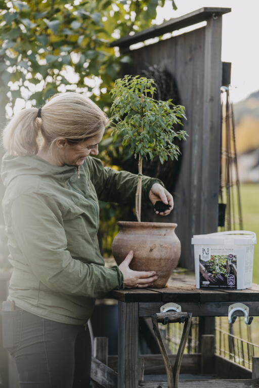 • Ved planting i større potter og urner: bland en del Biohumus Terra med 50 liter jord.