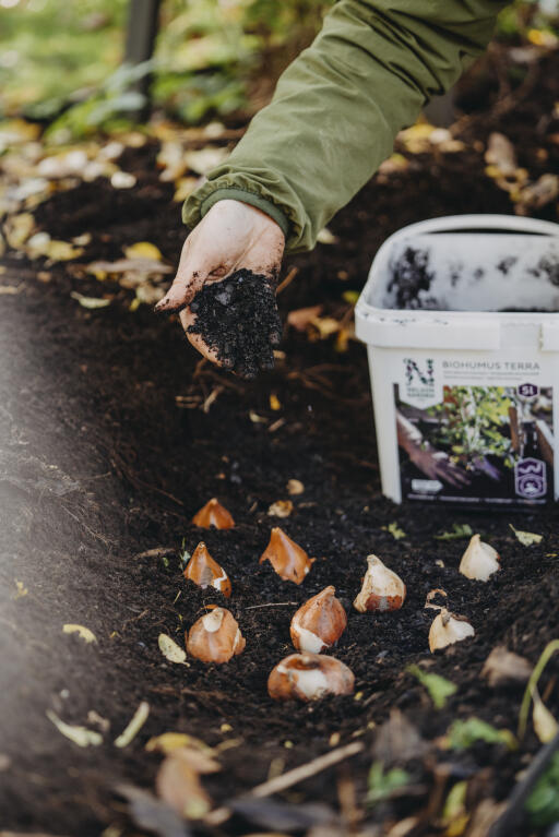• Ved planting av en buske eller et tre: bland en bøtte Biohumus Terra med den eksisterende jorden.